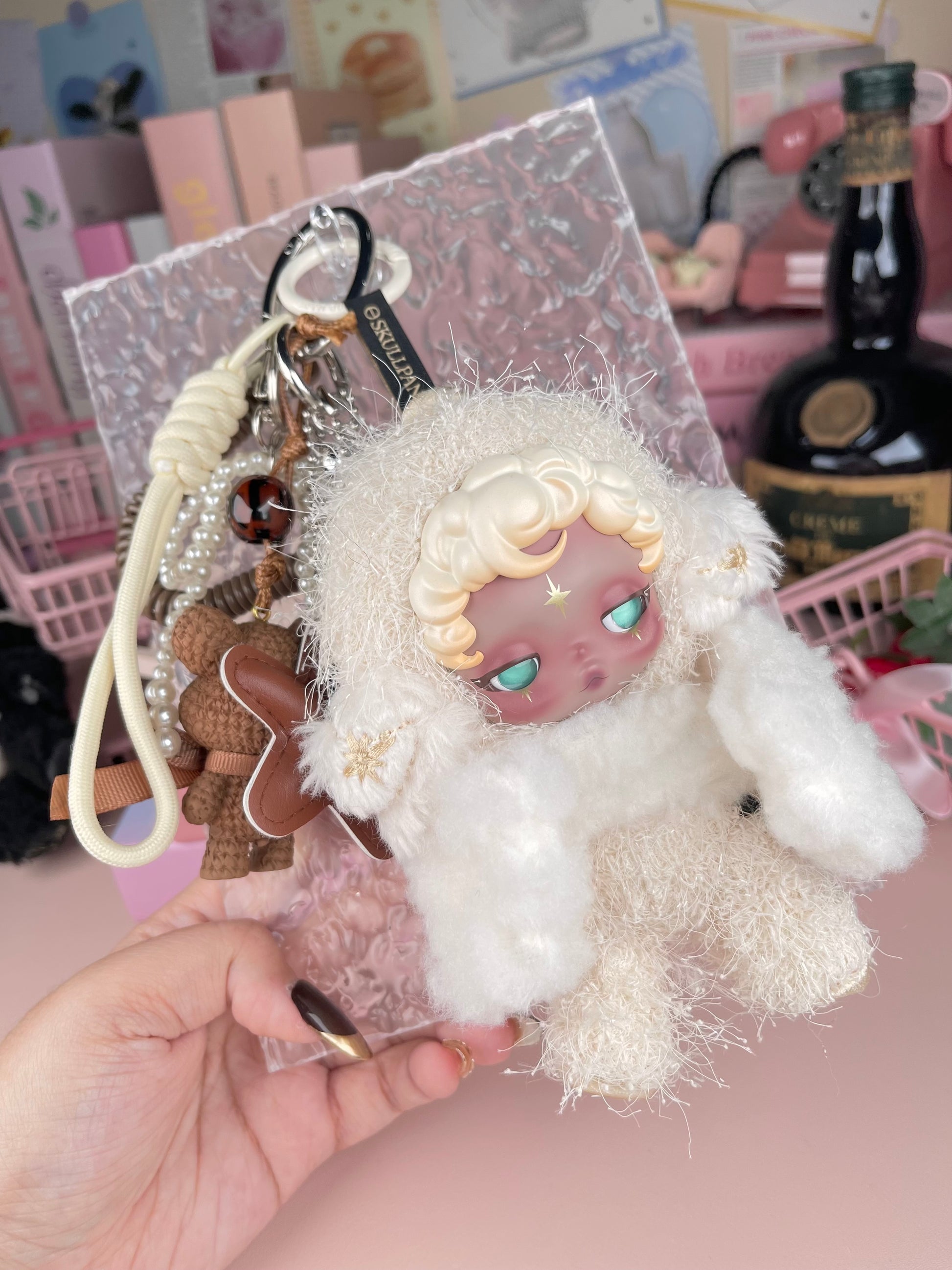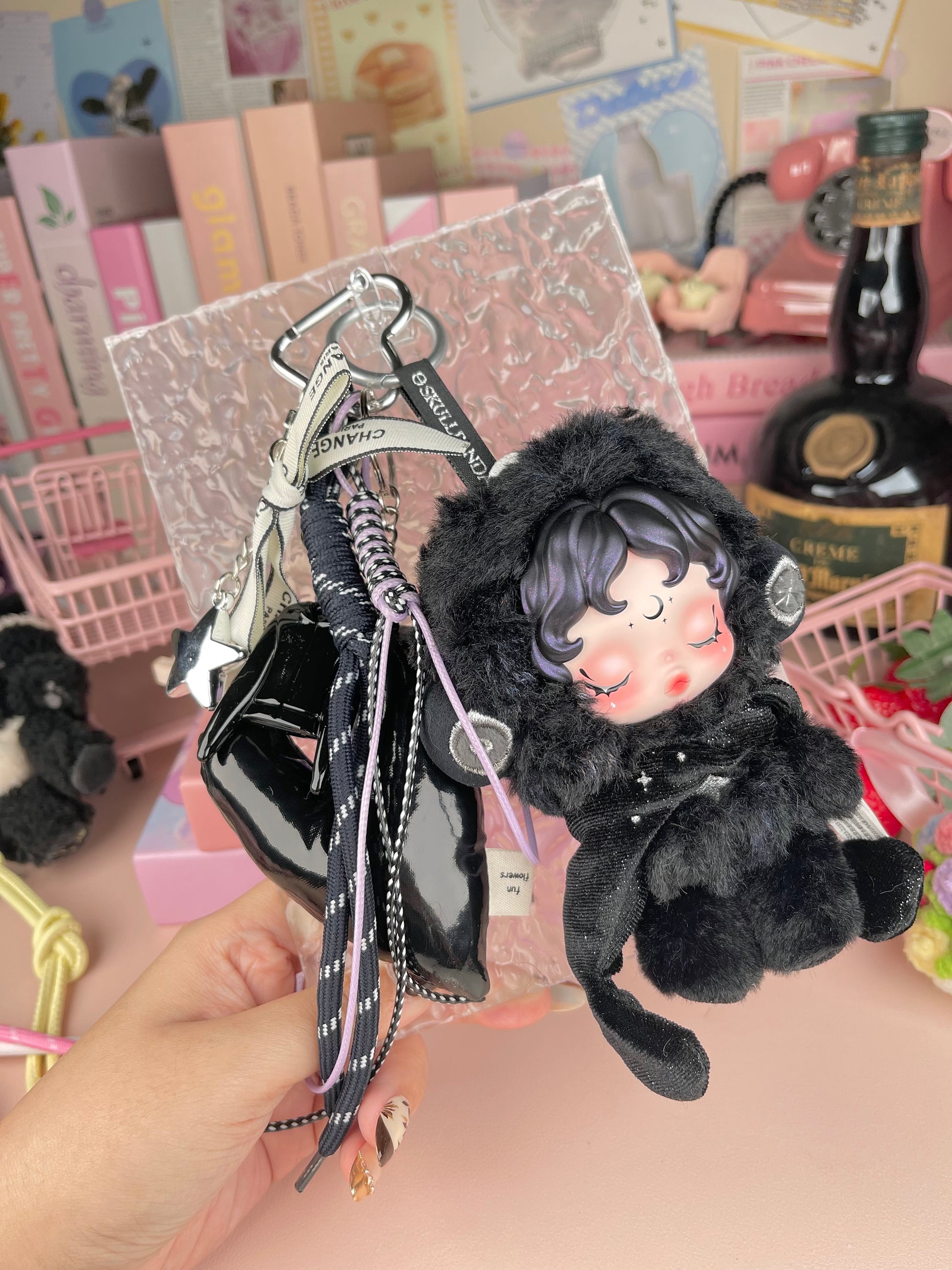 These unique keychains are made with authentic skullpanda vinyl plush dolls direct from Popmart, then paired uniquely with matching accessories ensuring it is one of a kind. You can use them on your bags, keys or even your phone!